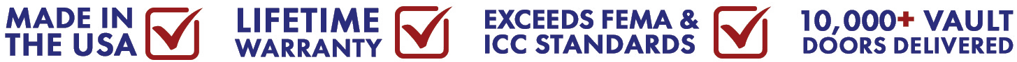 Vault Pro vault doors are engineered and built to exceed all FEMA 320 & 361, ICC-500 recommended standards for use in storm & tornado shelters. Vault doors are for indoor installation only.
